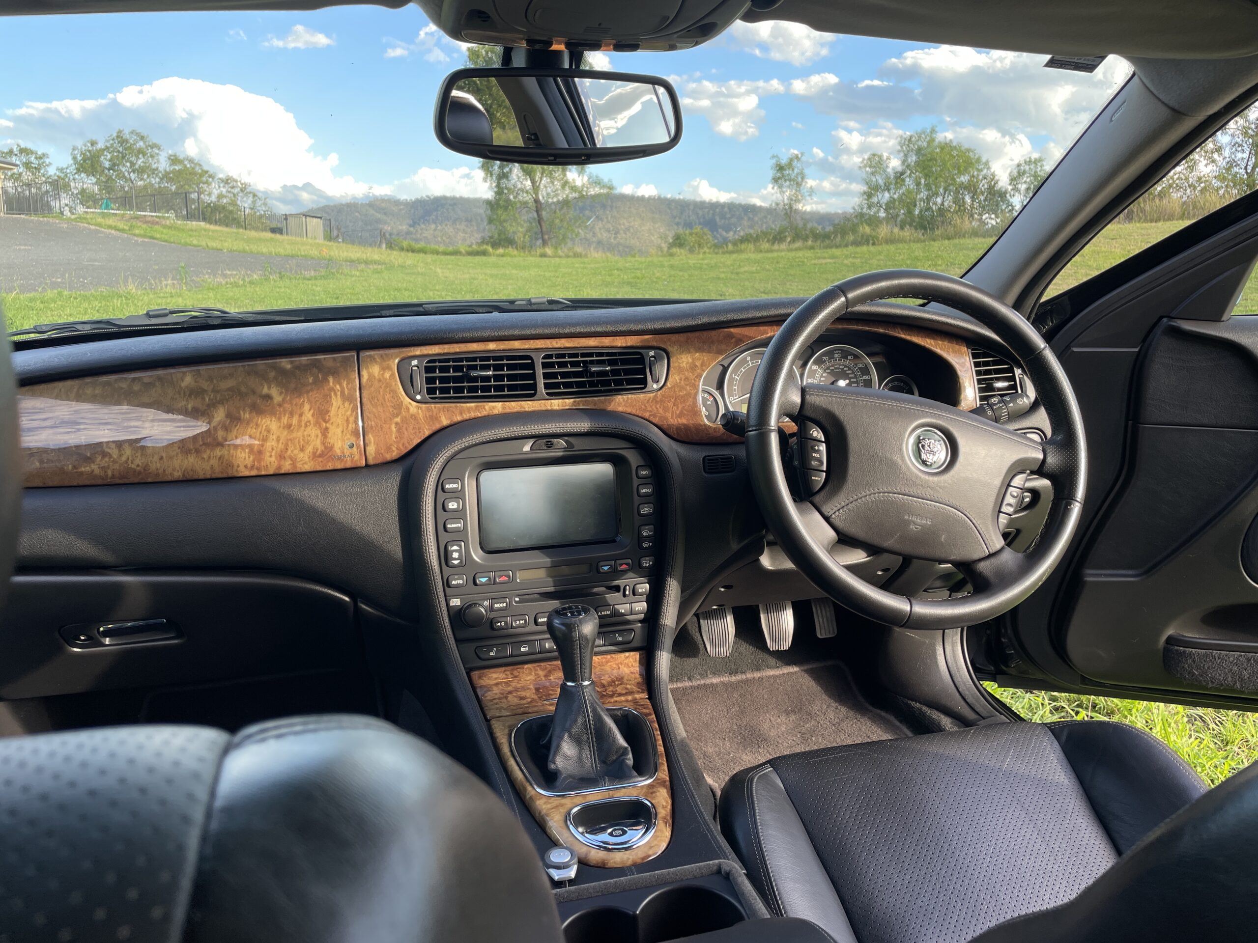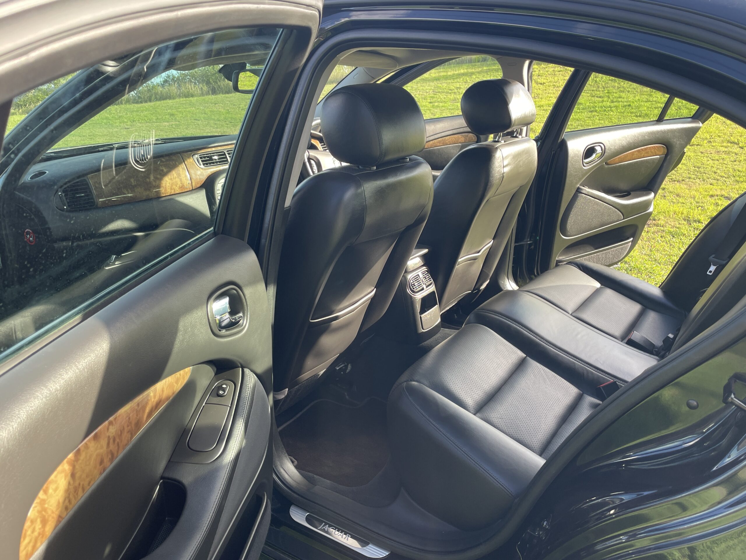 This Jaguar is decked out with luxurious features such as the all wood trim and is definitely one of a kind in this neck of the woods.
